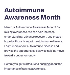 March is AUTOIMMUNE AWARENESS MONTH.