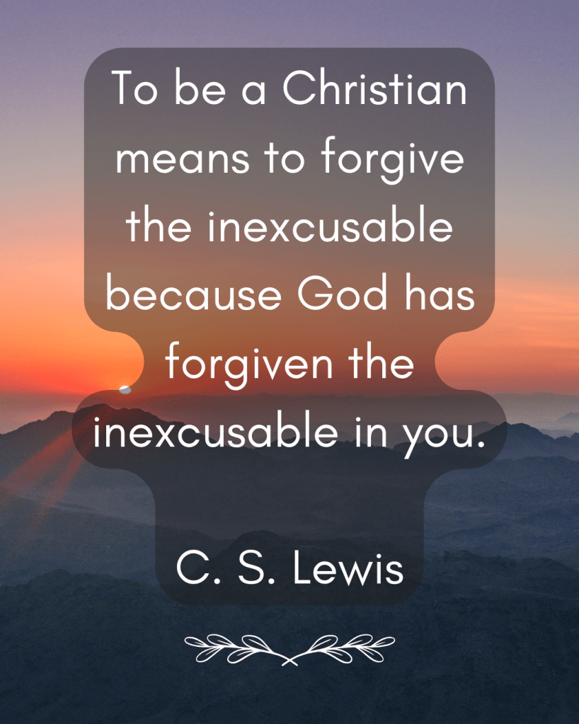 *note: forgiveness does NOT mean accepting unacceptable behavior from anyone; it is all about releasing our grip on offenses, letting God have them, and swapping out our anger & resentment for what really heals – God’s peace (which is our greater need).