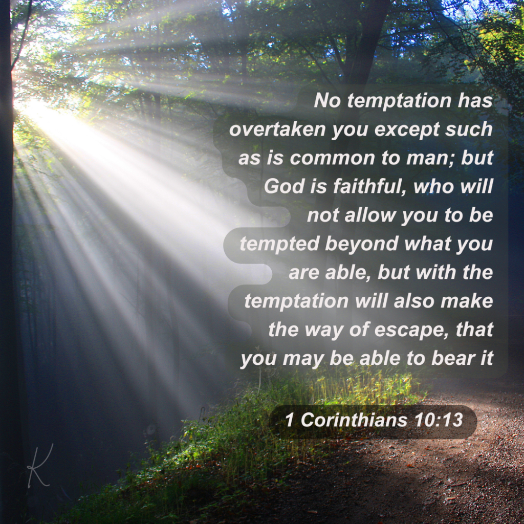 In His word, God promises (in 1 Corinthians 10:13); “No temptation has overtaken you except such as is common to man; but God is faithful, who will not allow you to be tempted beyond what you are able, but with the temptation will also make the way of escape, that you may be able to bear it.“